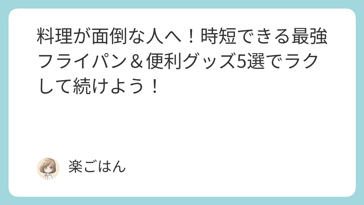 料理が面倒な人へ!時短できる最強フライパン&便利グッズ5選でラクして続けよう!